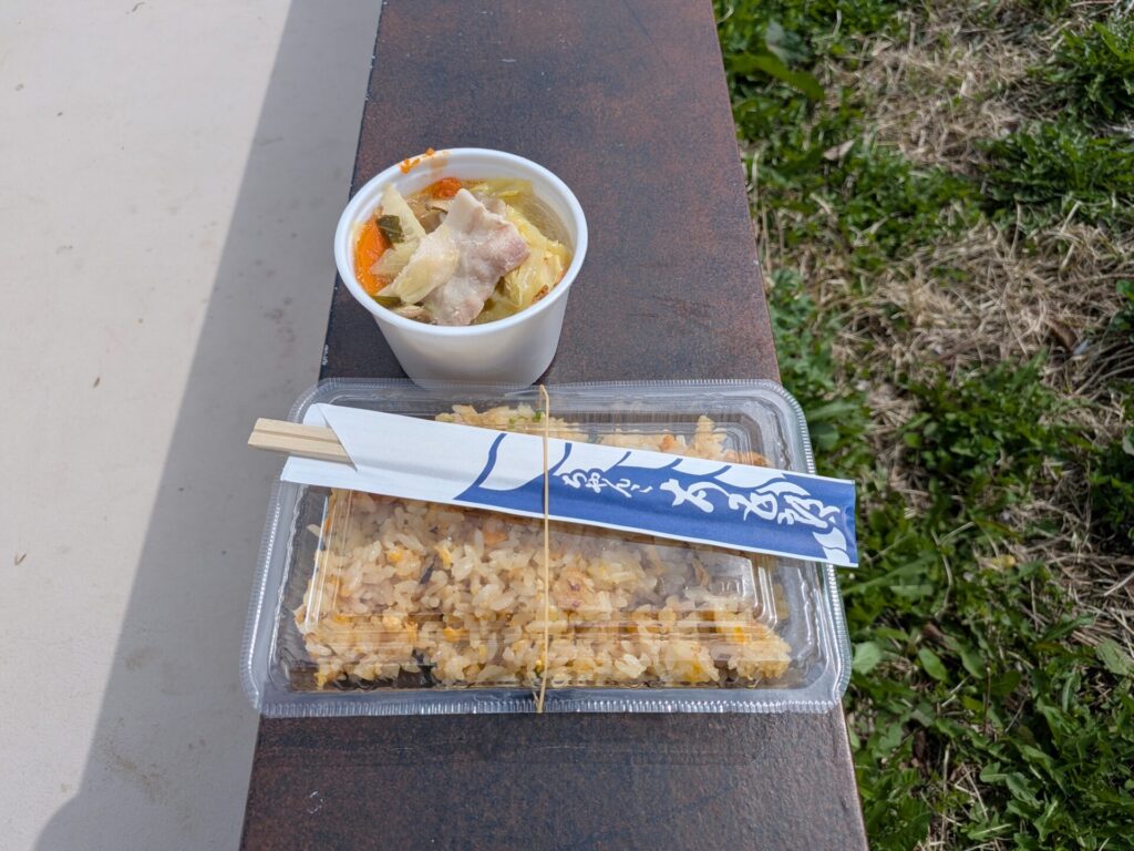 スタジアムグルメはミニサイズお好み焼きとグルージャちゃんこ、チャーハン。